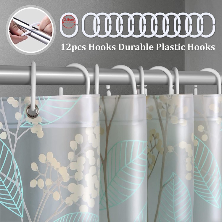 EVALiner Tirai Mandi Plastik, Tahan Air 3D Tebal Clear Shower Curtain Liner dengan 12 Kait Plastik.